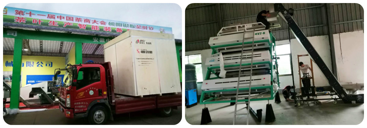 本次展会恰逢春茶季,不少茶企、茶商们过来实地视察机器均表达了合作意向。春茶加工忙,茶厂老板争分夺秒抢生产。这不,刚刚还在参展的茶叶色选机就运到客户家组装投放生产。