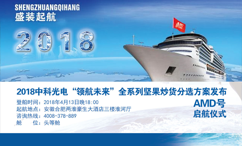每一年的四月都有一个美丽的约定,2018年的四月如期而至,第十二届坚果炒货展览会继续在美丽的合肥举办,中科光电欢迎各地区新老朋友前来考察,我们会为远道而来的您提供全系列的坚果炒货色选方案及优质服务。
